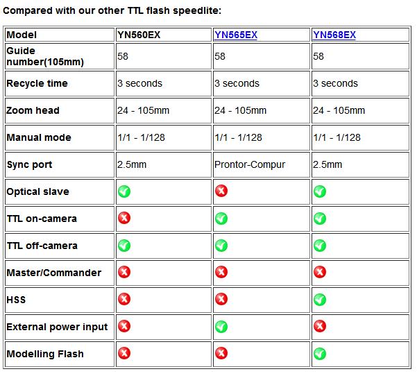 YN-568EX covers focal length range of auto, and 24~105mm, supports full-frame/half-frame caemra.